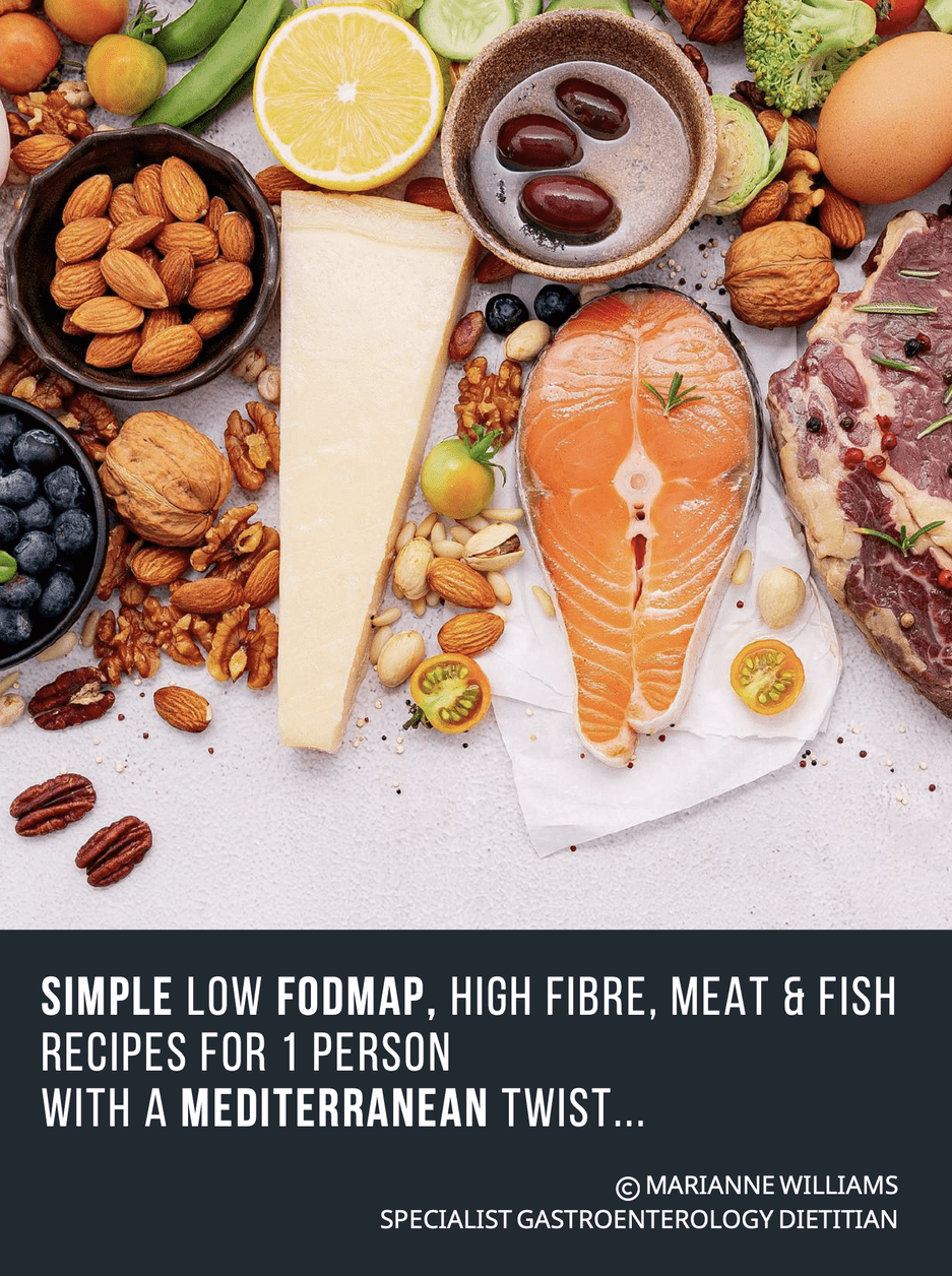 This free booklet has been carefully created to offer patients a selection of simple, easy-to-follow recipes. While I’m not a chef, I understand from personal experience how overwhelming the FODMAP diet can feel at first. That’s why I’ve brought together over 20 straightforward recipes based around meat and fish, many of which are inspired by the Mediterranean Diet. I hope these ideas offer you a helpful starting point — and perhaps a little inspiration along the way.